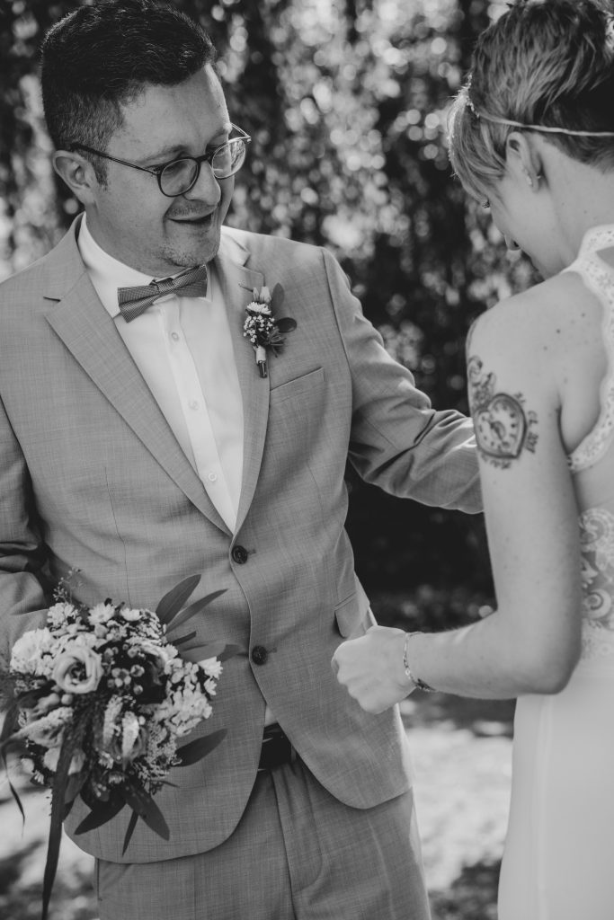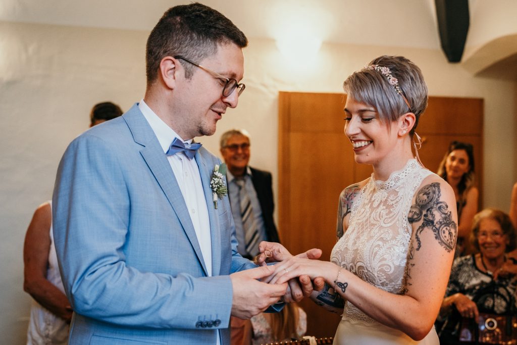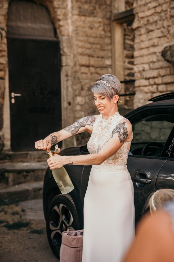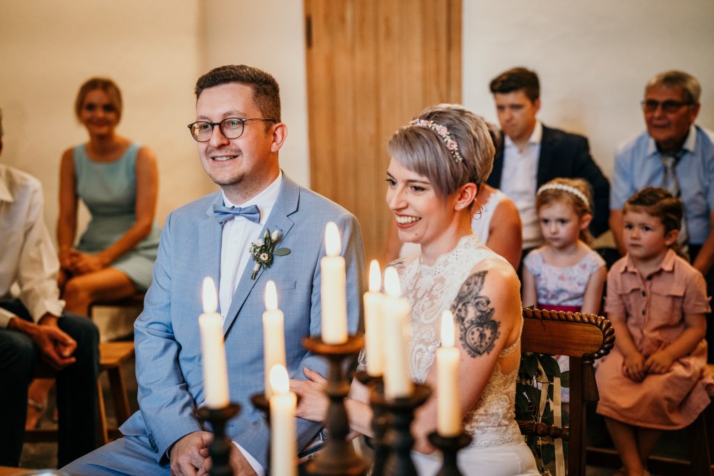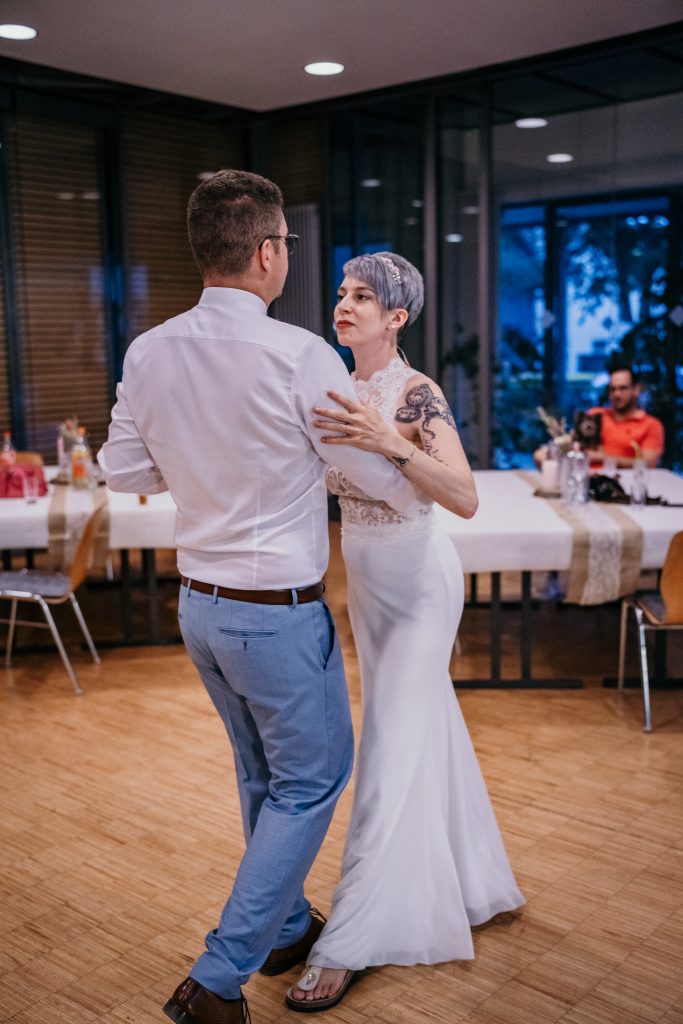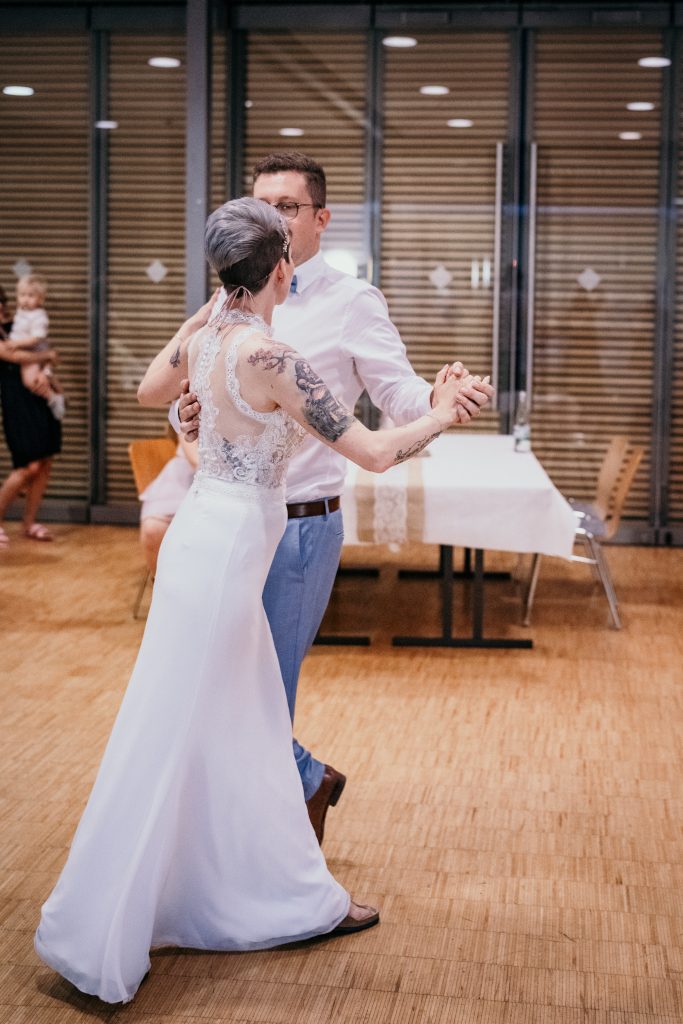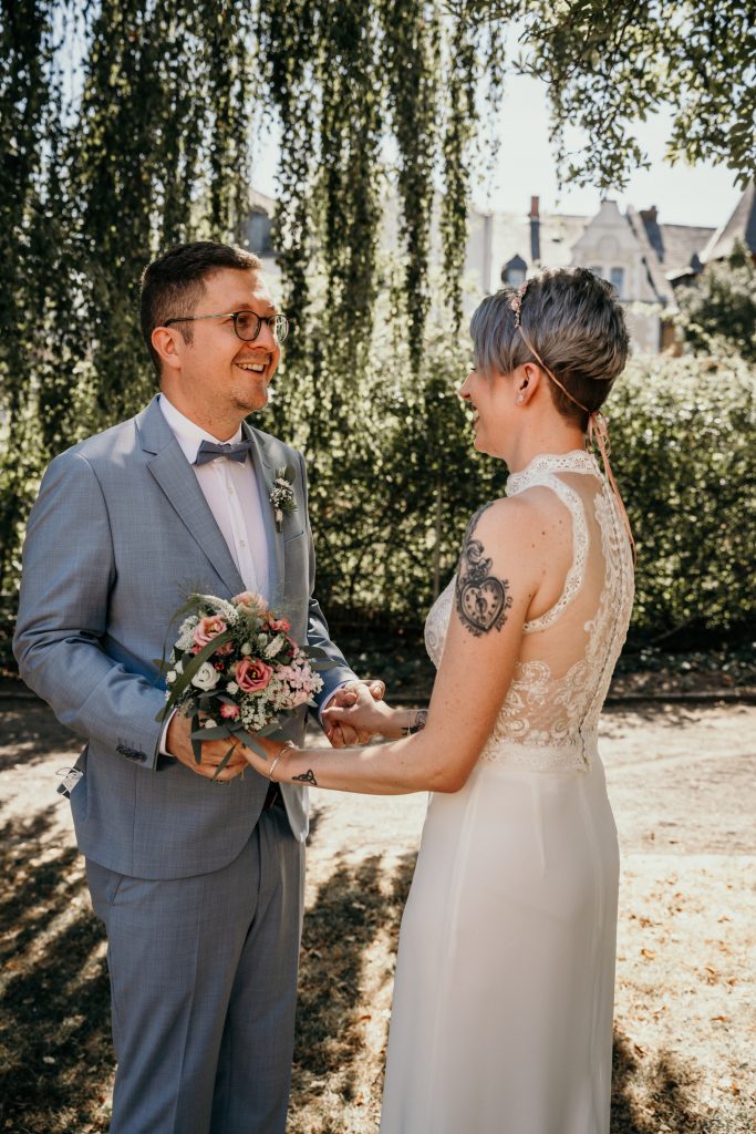 Die Ruhe und Gelassenheit, die Sebastian und Maike während dieses Moments ausstrahlten, waren beispiellos. Die übliche Nervosität, die mit einem Hochzeitstag einhergeht, schien wie verflogen. Stattdessen erlebten sie einen Moment der Einheit und des Friedens, der weit über den Trubel des Tages hinausging.