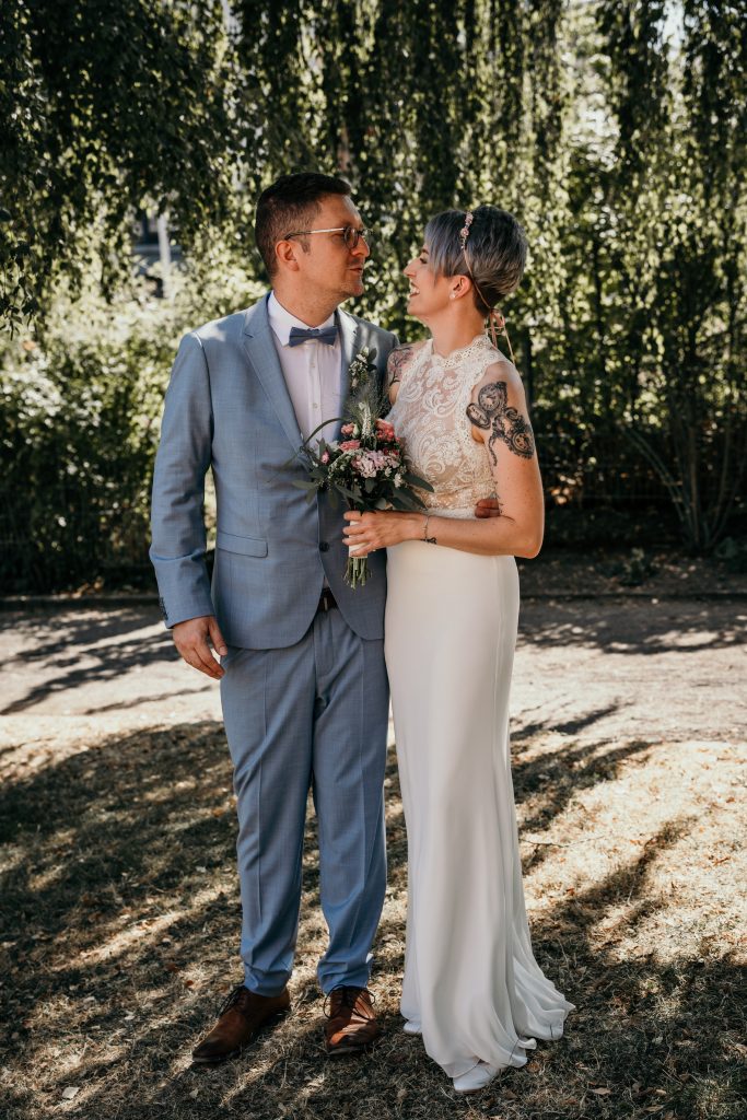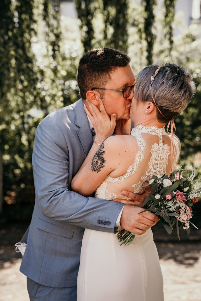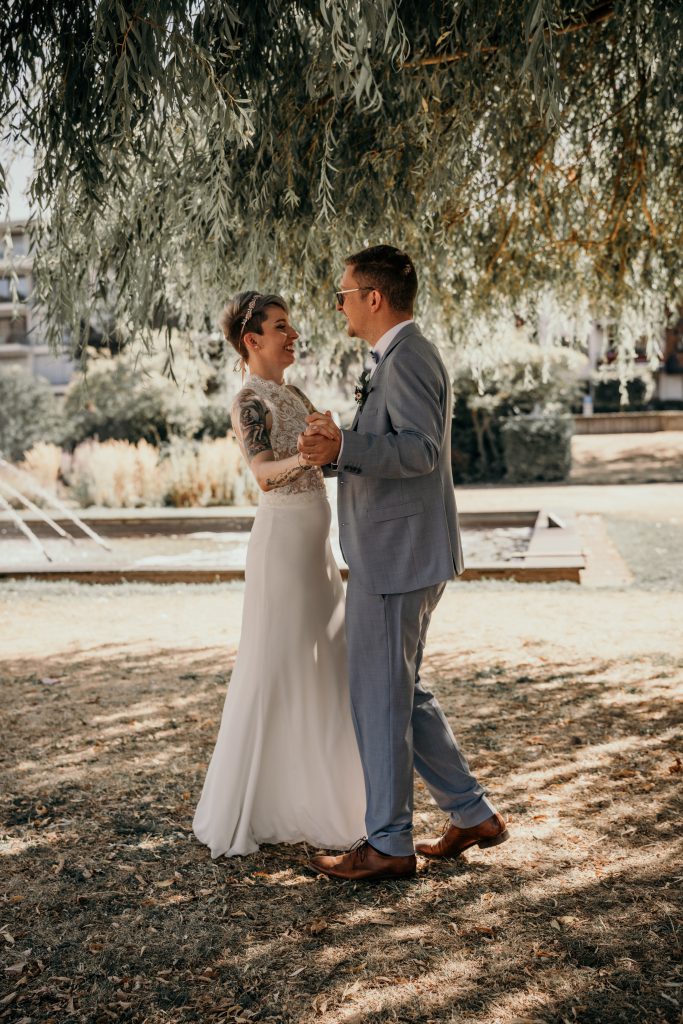Nach der bewegenden standesamtlichen Trauung in der Stadtburg Andernach begaben sich Sebastian und Maike zum Rheinpark, wo wir uns bei einem Eis kurz niederließen und entspannt miteinander plauderten. Der Park, mit seinen malerischen Ecken und Hintergründen, bot die perfekte Kulisse für das Brautpaarshooting an und zeigte eine weitere Seite ihrer Verbindung – ihre gemeinsame Leidenschaft fürs Tanzen.