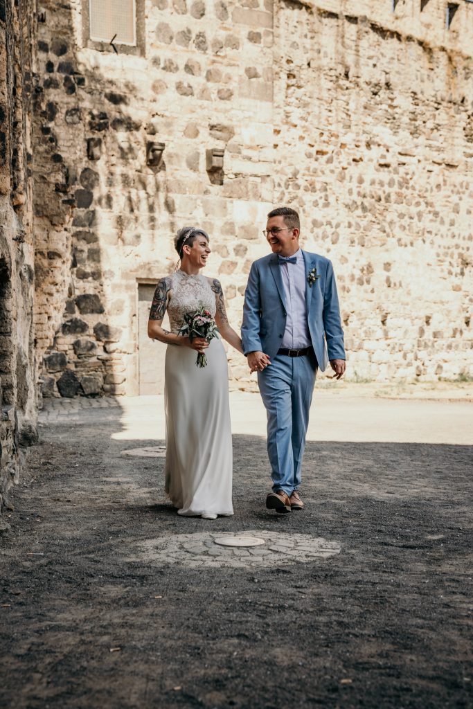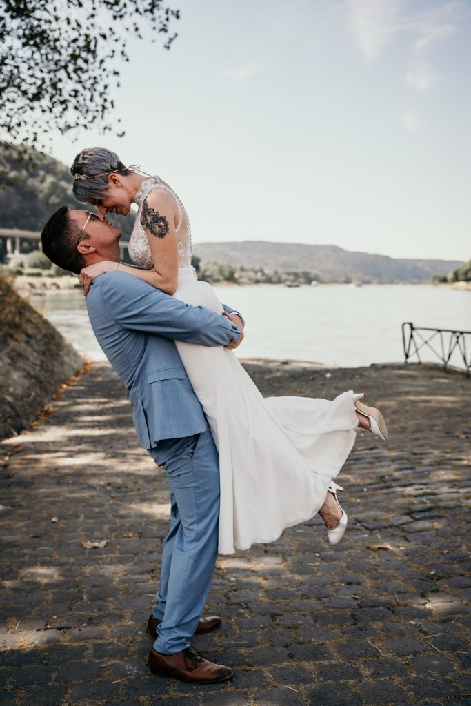Sebastian und Maike sind ein Beispiel für ein Paar, das diesen ganz besonderen Moment bewusst erleben wollte. Vor dem Andernacher Stadttor, in der Nähe des Standesamts, entschieden sie sich für diesen außergewöhnlichen Moment, der für beide unvergesslich werden sollte.